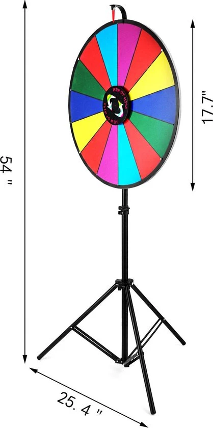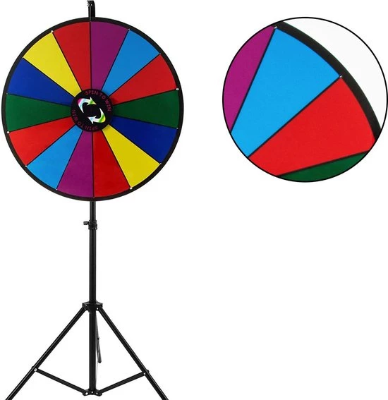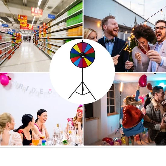 Er is niets spannender en vermakelijker op een feest dan een draaiend wiel. Dit Rad van Fortuin is veelzijdig waarmee je verschillende soorten spelletjes kunt spelen!