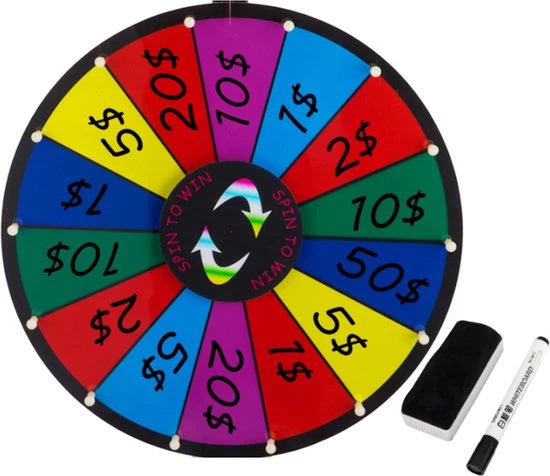 ?Diverse toepassingen- Dit draaiende wiel kan worden gebruikt in leuke spelletjes zoals waarheid of durf, verstoppertje en meer. Dit is ook een zeer vermakelijke manier om willekeurig mensen, prijzen, karweitjes, straffen, enz. te kiezen.