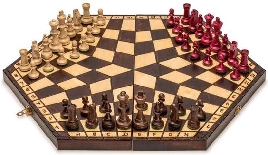 Schaaksets met drie spelers zijn een schaakvariant die, zoals de naam al doet vermoeden, zijn ontworpen om 3 spelers toe te laten in plaats van de standaardset van 2 spelers. Schaken met drie spelers is de afgelopen jaren populairder geworden omdat de opties voor schaken met drie spelers voor het publiek toegankelijker worden. De set is gemaakt van hoogwaardig, hoog contrast hout in rood, wit en zwart. De set is verkrijgbaar in 3 verschillende maten om aan alle ruimte- of budgetbeperkingen te voldoen. We raden het grote formaat aan voor maximaal effect en ruimtelijkheid. Vermenigvuldig uw plezier met een uniek schaakspel voor drie spelers!