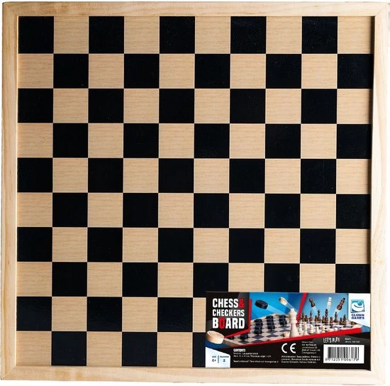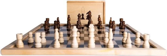 Speelgoed bordspellen. bestaande uit 1x Houten schaakbord/dambord 40 x 40 cm, 1x Set van 32x stuks houten schaakstukken in opbergkistje