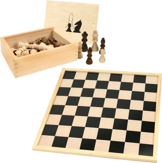 Speelgoed bordspellen. bestaande uit 1x Schaakbord/dambord van hout 40 x 40 cm, 1x Houten schaakstukken 32x stuks in opbergkistje