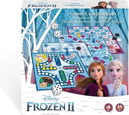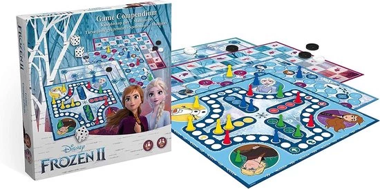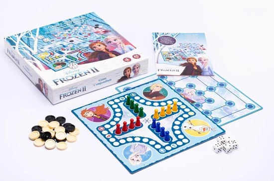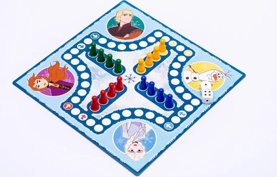 Zin een bordspel maar je kan niet goed kiezen? Geen probleem in deze doos zitten 4 verschillende spellen! Een ladderspel, dammen, een molenspel en een ludo (mens-erger-je-niet). Elsa, Anna, Olaf en Kristof maken het spelplezier alleen maar groter.