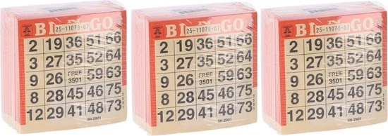 Met dit Bingokaarten 500 Vel – Voor Bingo met 75 Ballen – 3 Blokken – Voordeelpakket kan je uren lang bingo spelen! 3 sets bingokaarten van papier voor eenmalig gebruik, verpakt per 500 vel in 1 kleur.