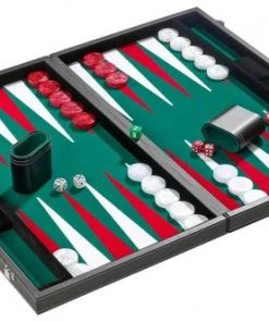 backgammonkoffer 53 cm xl de luxe casinomaat, luxe zwart kunstleder. Speelveld van groen velours, met ingelegde rode en witte punten diameter 38 mm.