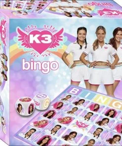 - Bevat 6 bingokaarten, 1 dobbelsteen met letters in kleur, 1 dobbelsteen met K3 foto’s en 60 afdekplaatjes