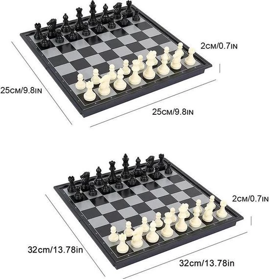 | Verpakkingsinhoud | 1X, Opklapbare, Magnetisch, Schaakbord-, Bordspellen-, Schaakset-, Chess, Set, -, 32cm, x, 32cm-, Schaak/dambord-, Met, Schaakstukken |