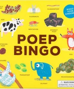 Ontdek alles wat je altijd al wilde weten over poep ? en meer ? met Poep bingo! Deze bingo draait om 24 dieren en hun unieke uitwerpselen: de kinderen zullen geen ander spel meer willen spelen. Ontdek dat wombats vierkantjes poepen en dat pingu?ns poep spuiten in een kleur die wordt bepaald door wat ze hebben gegeten! Vul als eerste je kaart met chips en win het spel.
