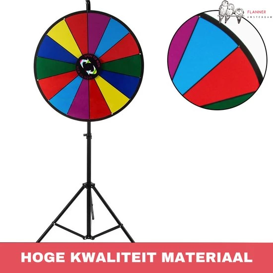 Niets maakt een feestje leuker dan een rad van fortuin waar prijzen mee te vallen zijn! Met deze in hoogte verstelbare draairad heb jij voor iedere gelegenheid weer een leuk gezelschapsspelletje gereed.