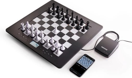Download de ChessLink-module en de gratis app zodat je op de online Lichess Server kan spelen. Zo kun je, direct op het board, oefenen tegen miljoenen mensen over de hele wereld. Wil je liever tegen de spelcomputer spelen? Dat kan uiteraard ook. Je kunt de settings van de computer aanpassen van easy naar expert mode. De schaakcomputer is klaar van de toekomst. Hij kan namelijk constant worden uitgebreid door hem met de USB aan te sluiten en nieuwe upgrades te downloaden.