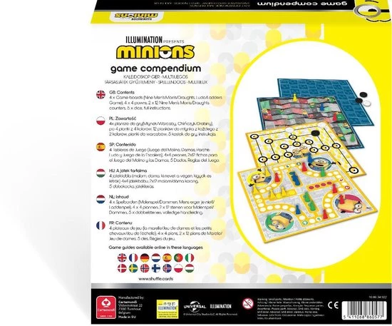 Zin een bordspel maar je kan niet goed kiezen? Geen probleem in deze doos zitten 4 verschillende spellen! Een ladderspel, een molenspel, een ladderspel en een ludo (mens-erger-je-niet). De Minions maken het spelplezier alleen maar groter.