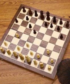 Dit houten schaakspel is in een groot formaat van 40x40cm maar inklaapbaar waardoor het makkelijk overal mee naatoe te nemen is. De binnenkant kan worden gebruikt voor het spel backgammon. De schaakstukken en backgammonstukken zijn meegeleverd.