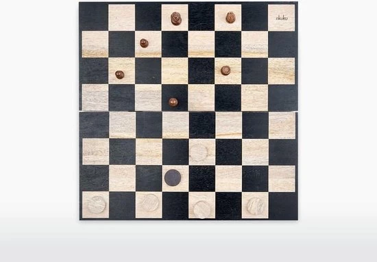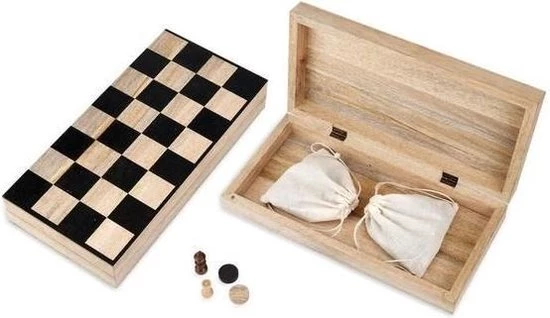 Dit tijdloze houten schaakspel en damspel combineert decoratie en functionaliteit met natuur. Dit schaak- en dambord is met de hand gemaakt van duurzaam mangohout. Het spel bestaat uit een bord en pionnen. Het houten bord kan na afloop worden opgevouwen om zo de pionnen op te bergen zodra het spel voorbij is. Deze game is een ideaal geschenk zijn voor alle schaak- en strategiespel liefhebbers.