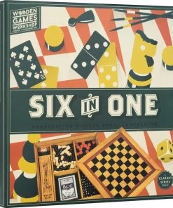 Deze Six in One set bevat 6 klassieke houten spellen en staat garant voor uren speelplezier.