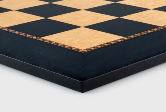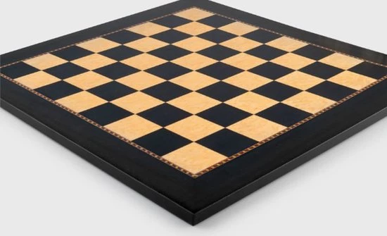 Een luxe schaakbord met kwalitatieve hoogwaardige uitstraling. Het fineer is zorgvuldig gekozen en ingelegd. Het bord wordt gemaakt met behulp van moderne fabricagetechnieken onder zeer hoge druk, waardoor een stevige constructie ontstaat. Het bord is meervoudige afgewerkt, waardoor het zeer zacht aanvoelt en een satijnzachte glans heeft. De onderkant van het bord is ook heel mooi met fineer afgewerkt. Het bord heeft als verfraaing een drievoudige sierader.