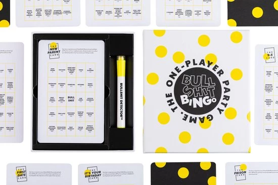 Bullshit Bingo is the 1-player party game that transforms the BS of everyday life into a party for 1. By encouraging people to gamify real life, the game offers a refreshing reminder not to take life too seriously. It is a bit like therapy, but way less expensive.