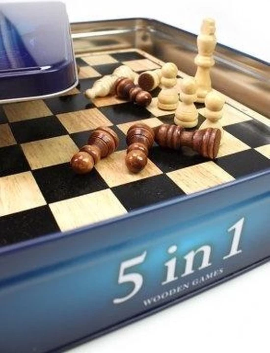 5 verschillende klassieke spellen in ??n doos. Kwalitatief hoogwaardige uitvoering, in blikken doos.