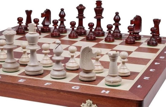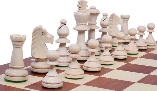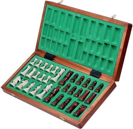 - Materiaal van het schaakbord: Ingelegd met hout mahonie/ahorn.