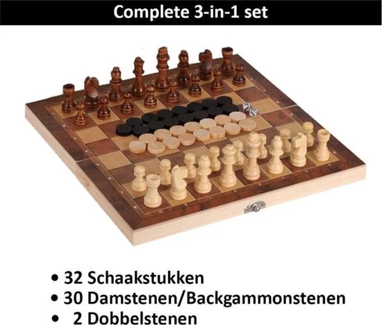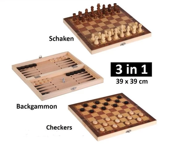 Het meest klassieke bordspel allertijden in het juiste formaat. Dit is hem, en niet alleen dat, want deze 3-in-1 set bestaat uit maarliefst 3 spellen: schaken, checkers en backgammon, echt iets voor jou! Prikkel je hersenen en test je behendigheid en neem het op tegen vrienden en familie in deze drie tijdloze klassiekers. Gegarandeerd uren speelplezier!