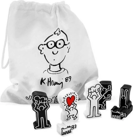 MoMA Exclusive: Enjoy a more playful game of chess with pieces adapted from some of Haring’s most beloved works. A cheerful set shaped after sketches that will be instantly recognizable to anyone familiar with the artist, the Keith Haring Chess Set features pawns made of Haring’s barking dogs and castles shaped like men with their arms in the air. Crafted of turned and lacquered wood by the venerated toy firm Vilac, the Keith Haring Chess Set includes a white fabric bag to hold the pieces when not in use that features the artist’s 1989 self-portrait. The Keith Haring Chess Set board measures 12.6” square and pieces range from 0.5” (pawn) to 2.5” (king) tall. Haring has work in MoMA’s collection. Ages 6+.