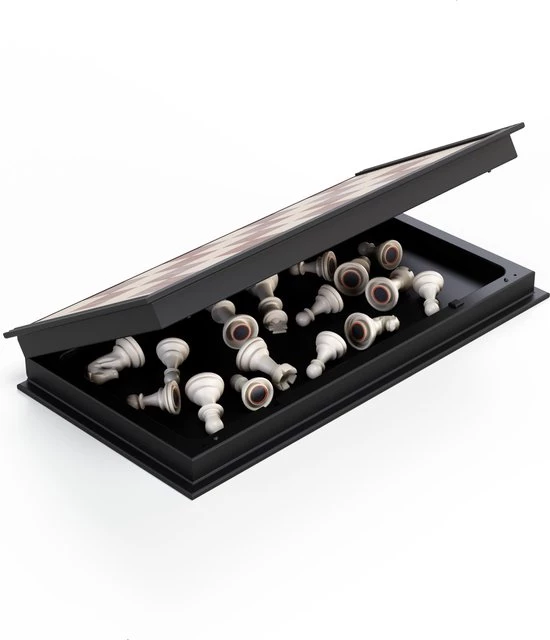 ? Handig magnetisme – Elk individueel schaakstuk heeft een magnetische aantrekkingskracht op de 64 vierkanten die het speelveld telt. Het unieke magnetisme zorgt ervoor dat je altijd stabiel kunt spelen in winderig weer, in de auto of buiten zonder dat ze elke keer weer omvallen of het lastig is om ze van het bord af te halen.
